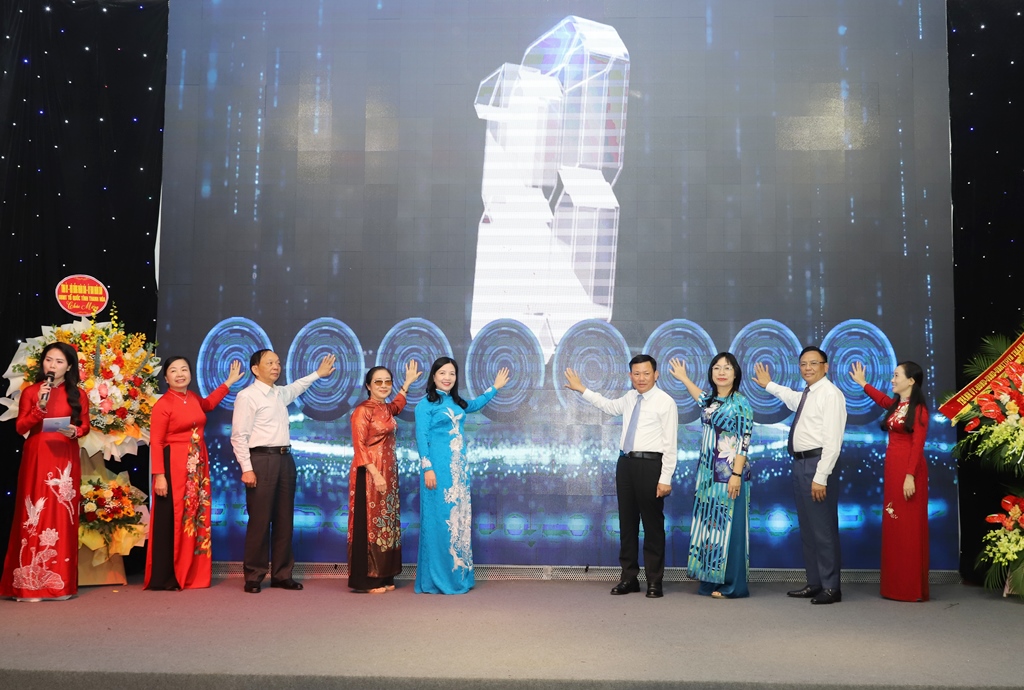 Thay mặt các đồng chí lãnh đạo tỉnh, các đồng chí Ủy viên Ban Thường vụ Tỉnh ủy: Phạm Thị Thanh Thủy, Trưởng Ban Dân vận Tỉnh ủy, Chủ tịch Ủy ban MTTQ tỉnh; Nguyễn Văn Thi, Phó Chủ tịch Thường trực UBND tỉnh tặng hoa chúc mừng Ban tổ chức.
