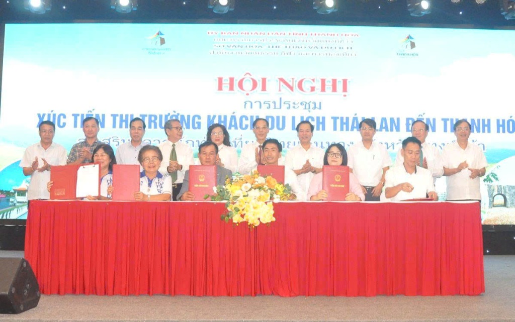 | Các doanh nghiệp du lịch tỉnh Thanh Hóa và các doanh nghiệp du lịch Thái Lan ký kết Biên bản ghi nhớ hợp tác du lịch. |