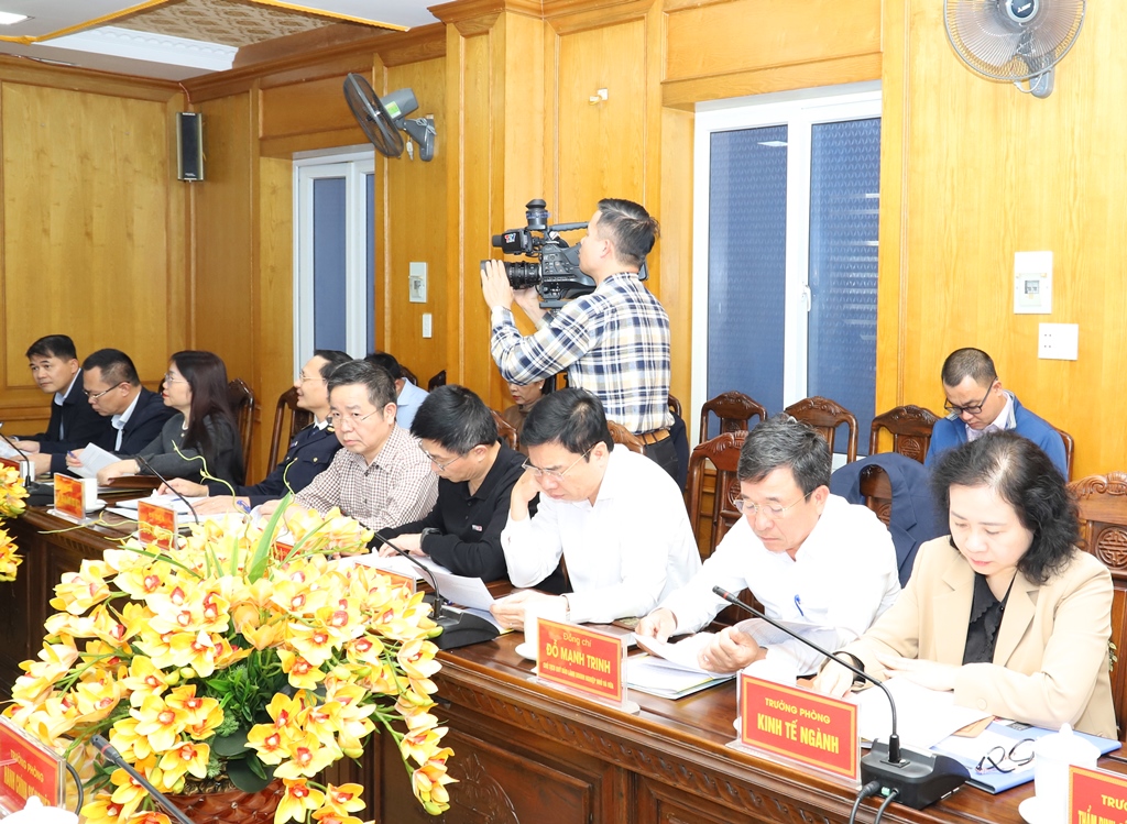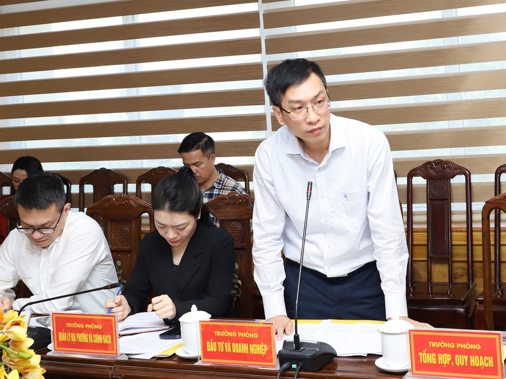 Đại diện lãnh đạo các ngành tham gia ý kiến tại buổi làm việc.