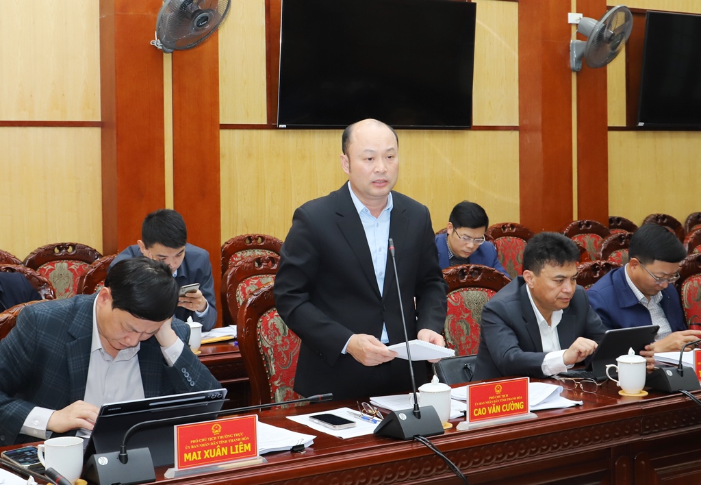 Phó Chủ tịch UBND tỉnh Cao Văn Cường phát biểu tại phiên họp.
