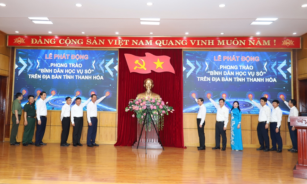 Tại buổi lễ, các đồng chí lãnh đạo tỉnh đã bấm nút phát động phong trào, thông qua kế hoạch và đề cương thực hiện phong trào “Bình dân học vụ số trên địa bàn tỉnh Thanh Hóa”.