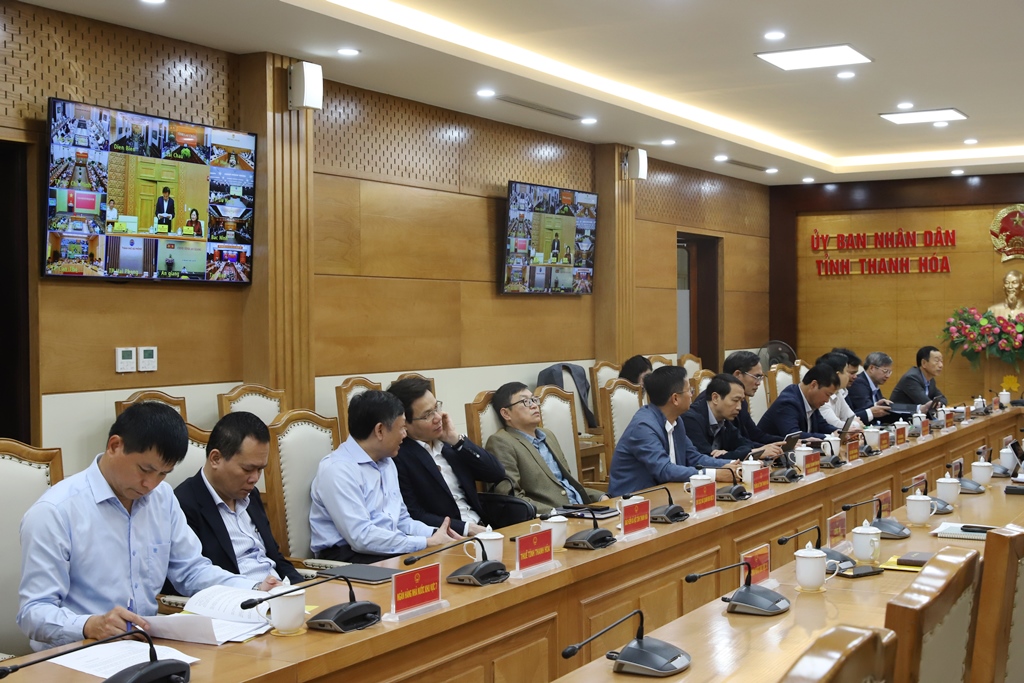 Dự phiên họp tại điểm cầu Trụ sở UBND tỉnh Thanh Hóa có các đồng chí: Nguyễn Hoài Anh, Ủy viên Trung ương Đảng, Phó Bí thư Tỉnh ủy, Chủ tịch UBND tỉnh; Lê Quang Hùng, Ủy viên BTV Tỉnh ủy, Phó Chủ tịch UBND tỉnh; Đầu Thanh Tùng, Tỉnh ủy viên, Phó Chủ tịch UBND tỉnh; lãnh đạo các sở, ngành, đơn vị liên quan.