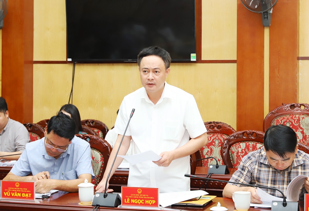 Giám đốc Sở Nội vụ trình bày dự thảo tại phiên họp.