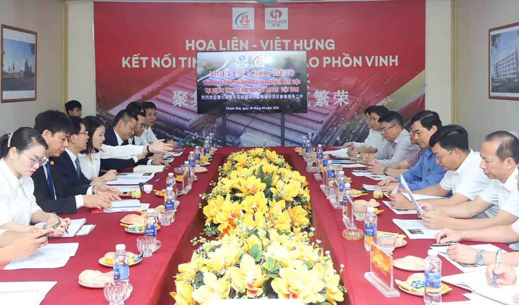 Phát biểu tại buổi làm việc, Chủ tịch UBND tỉnh Nguyễn Hoài Anh đánh giá cao và biểu dương tiến độ đầu tư dự án thung lũng gốm sứ Asean Việt Nam tại Thanh Hóa của Tập đoàn gốm sứ Hoa Liên - Hồ Nam. Đồng chí cam kết tỉnh Thanh Hóa sẽ đồng hành sát cánh cùng doanh nghiệp tháo gỡ khó khăn trong suốt quá trình thực hiện dự án. Chủ tịch UBND tỉnh mong muốn, từ thành công bước đầu của dự án, Tập đoàn Hoa Liên - Hồ Nam và các nhà đầu tư khác tiếp tục quan tâm tìm hiểu, đầu tư vào Thanh Hóa.