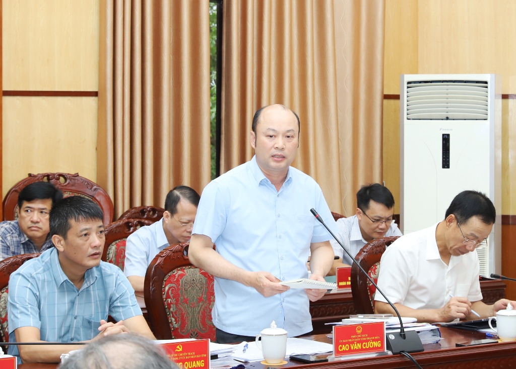 Phó Chủ tịch UBND tỉnh Cao Văn Cường phát biểu ý kiến tại phiên họp.
