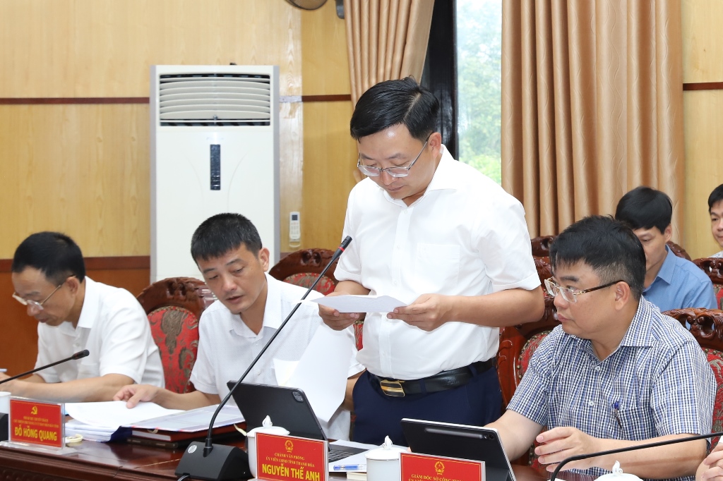 Chánh Văn phòng UBND tỉnh Nguyễn Thế Anh phát biểu tại phiên họp.
