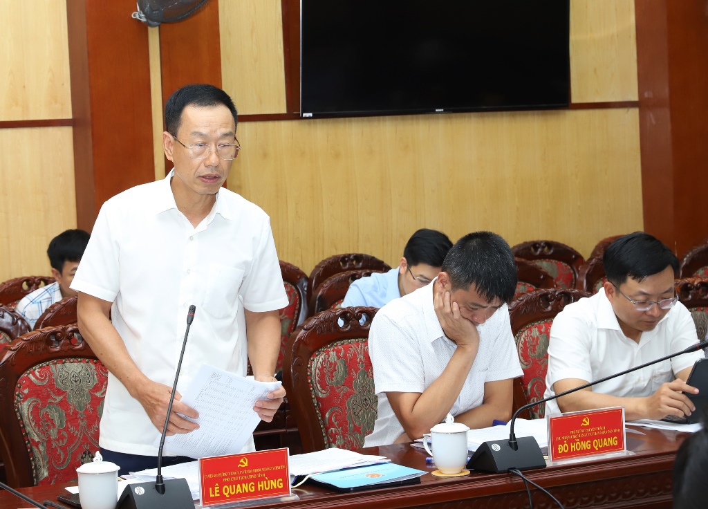 Phó Chủ tịch UBND tỉnh Lê Quang Hùng phát biểu tại phiên họp.