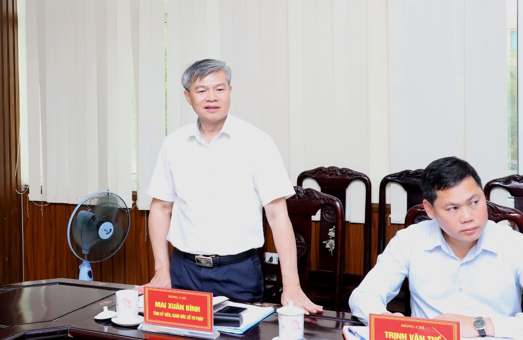 Giám đốc Sở Tư pháp Mai Xuân Bình phát biểu tại buổi làm việc.