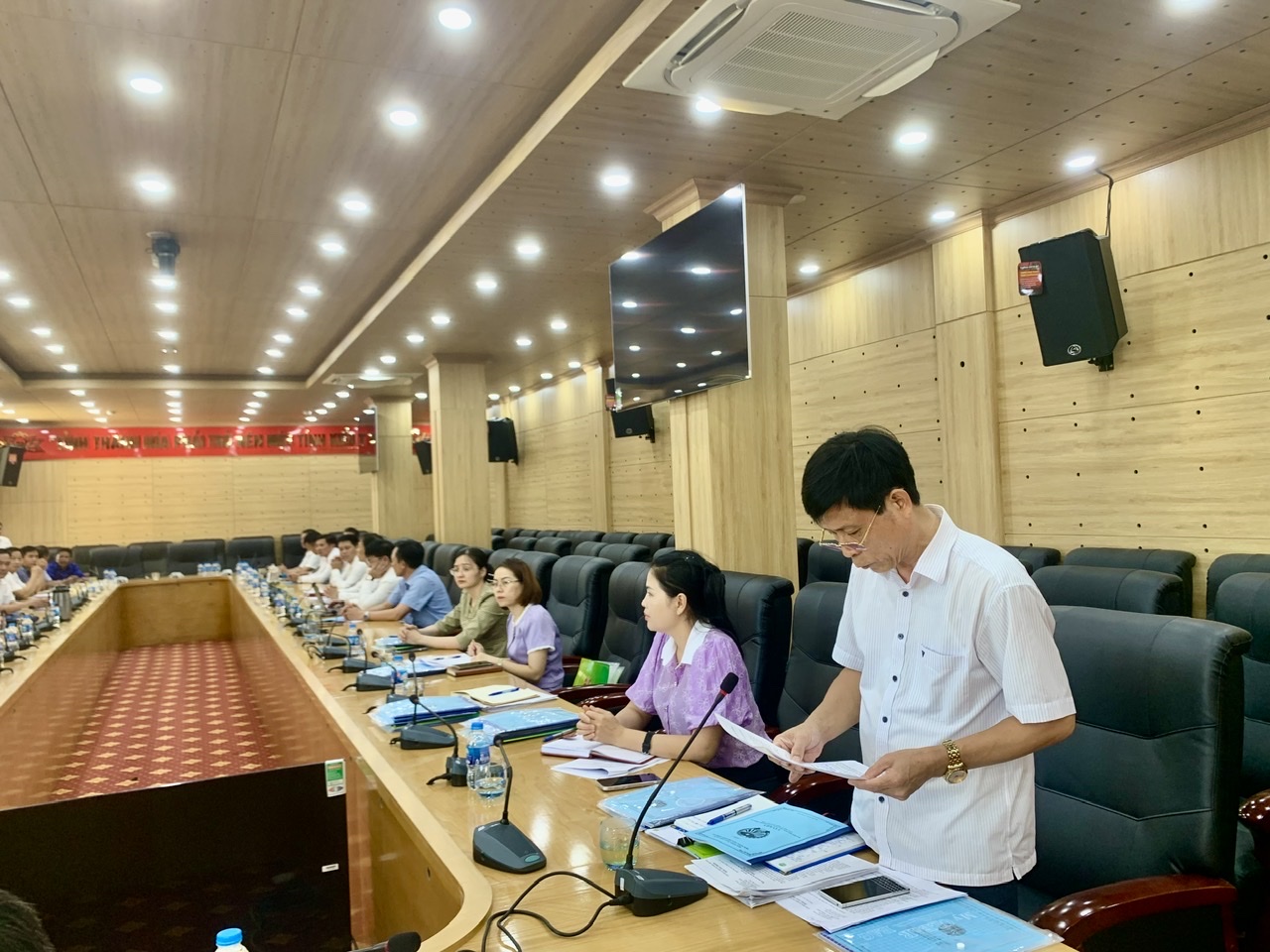 Đồng chí Bùi Xuân Thiên, Ủy viên Ban Thường vụ Hội Nông dân tỉnh, Phó Trưởng ban Thường trực Ban công tác Nông dân trình bày báo cáo thẩm định duyệt Văn kiện Đại hội các đơn vị.