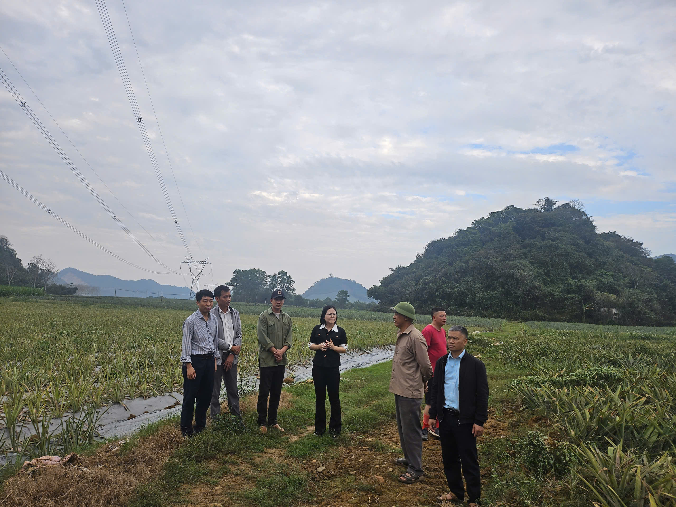 Ban điều hành Quỹ Hỗ trợ nông dân thẩm định các hộ tham gia dự án trồng dứa trên địa bàn xã Vân Du.