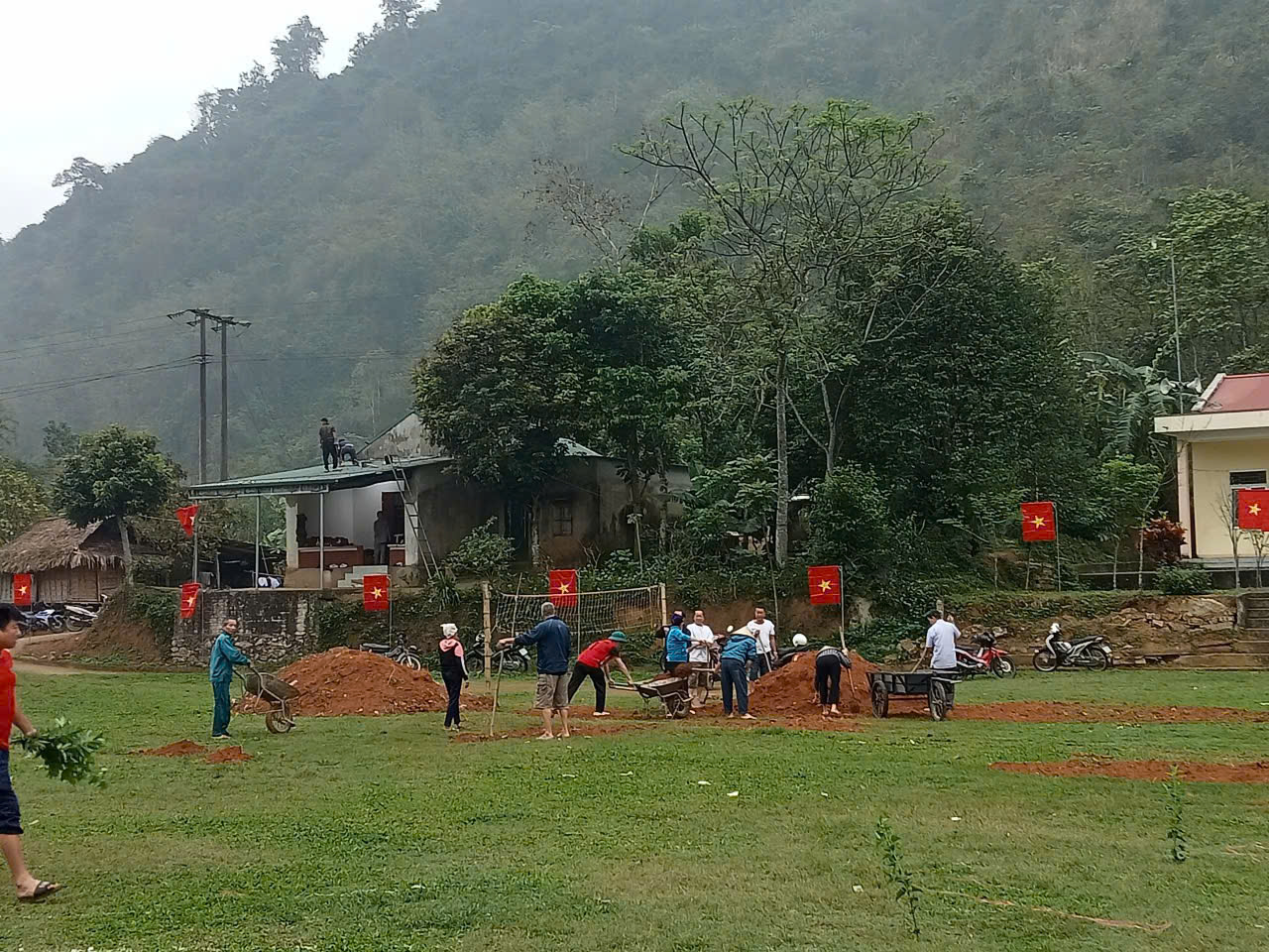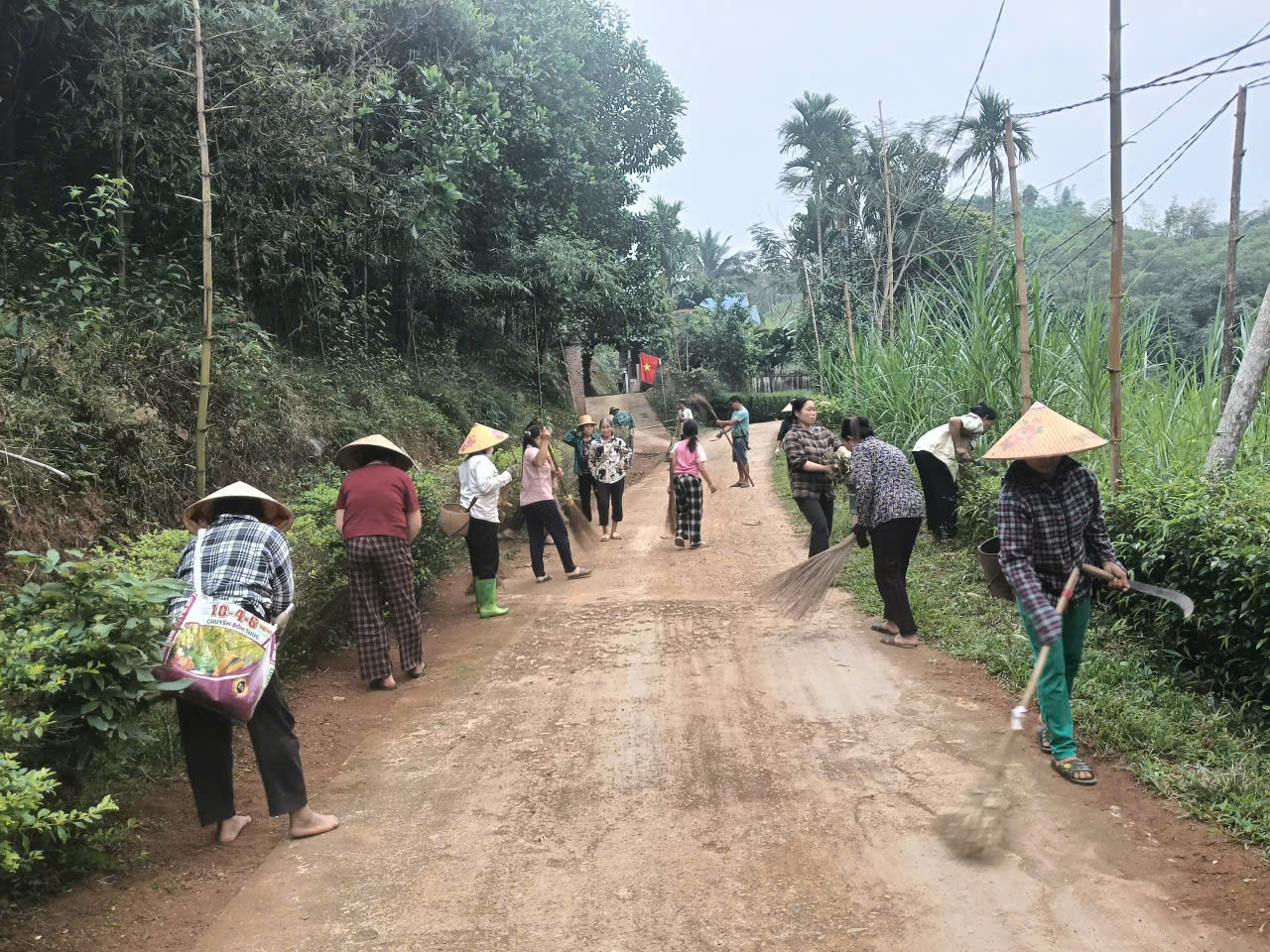 Hội viên nông dân xã Pù luông dọn dẹp vệ sinh chuẩn bị cho ngày bầu cử.