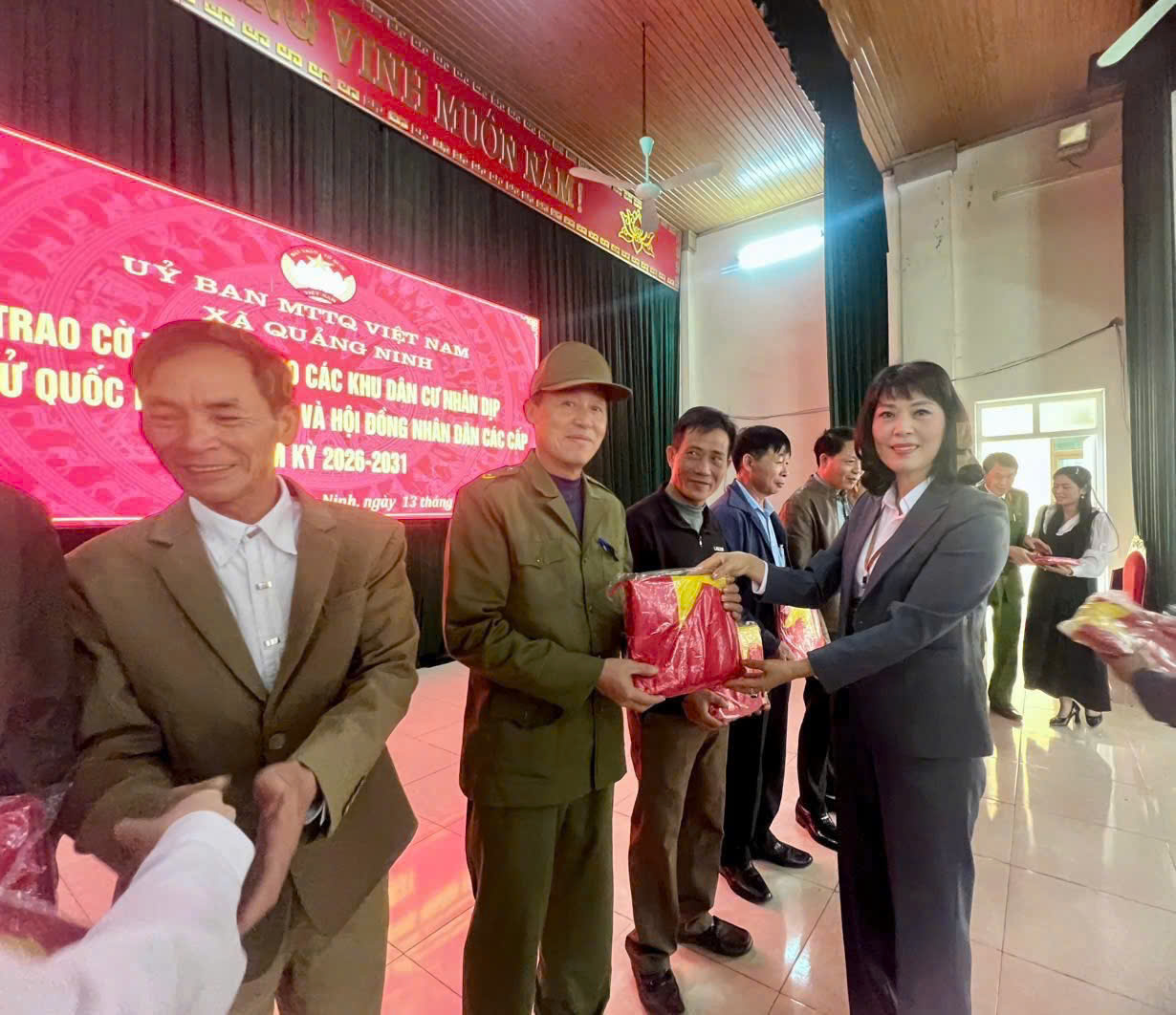 Các đoàn thể và MTTQ xã Quảng Ninh tặng 1.000 lá cờ Tổ quốc chào mừng bầu cử