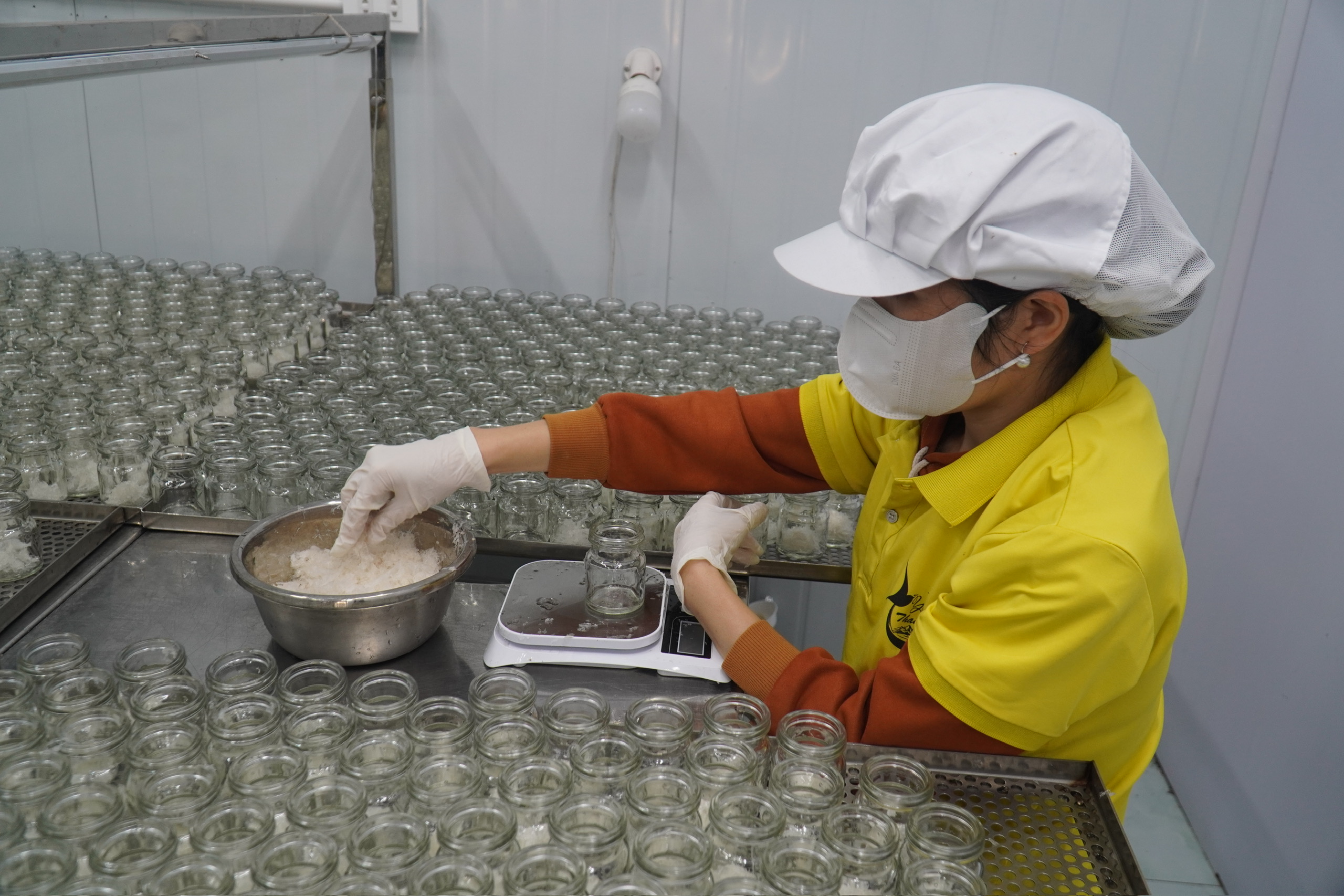 Anh Tú cho biết, toàn bộ nhà xưởng được kiểm soát nghiêm ngặt theo các tiêu chuẩn vệ sinh an toàn thực phẩm. Công ty chú trọng đào tạo, nâng cao tay nghề cho đội ngũ công nhân làm tinh chế; đồng thời hoàn thiện các chứng nhận an toàn thực phẩm, HACCP, ISO 22000. "Yến sào xứ Thanh tuân thủ nghiêm ngặt quy trình từ khâu chọn nguyên liệu đến sản xuất. 100% tổ yến nguyên chất, có kiểm chứng trực tiếp; ứng dụng công nghệ sấy lạnh, vi tách ẩm giúp giữ nguyên màu sắc, mùi vị, cấu trúc của tổ yến; không sử dụng phụ gia hay chất bảo quản, bảo đảm an toàn thực phẩm…", anh Tú khẳng định.